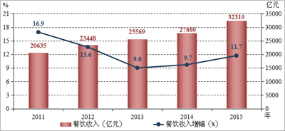 1月19日,國家統計局發布數據,2015年全國餐飲收入實現32310億元,同比增長11.7%,增速比上年提升2.0個百分點;限上餐飲收入8667億元,同比增長7.0%,高于上年4.8個百分點。