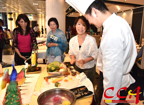 本次體驗(yàn)活動設(shè)計了三次“與大師面對面”互動節(jié)目,互動給體驗(yàn)帶來了一波又一波的高潮。由王志強(qiáng)大師指導(dǎo)高徒制作的抻面細(xì)如絲發(fā),師傅手臂舞動,面絲有如神靈變成細(xì)絲,深深地吸引了學(xué)員們的目光。大家用眼睛看,用手觸摸,直觀地學(xué)習(xí)了這一獨(dú)具中國特色的面食的制作過程。由韓國孝大師帶來的果蔬雕刻技藝展演將體驗(yàn)活動推向了第二波高潮。韓大師一手持胡蘿卜,一手持雕刻刀,三下五除二的功夫就將一截普普通通的胡蘿卜變成了惟妙惟肖的小麻雀,讓人驚嘆不已。由面點(diǎn)師傅們現(xiàn)場親授中國傳統(tǒng)水餃的制作方法,將整場宴會推向了最高潮。看著面點(diǎn)師傅們以熟練的手法將白白胖胖的餃子一個個呈現(xiàn)在眼前,學(xué)員們將展臺圍了個水泄不通,在師傅們的指點(diǎn)下親手完成了讓自己自豪的作品。
