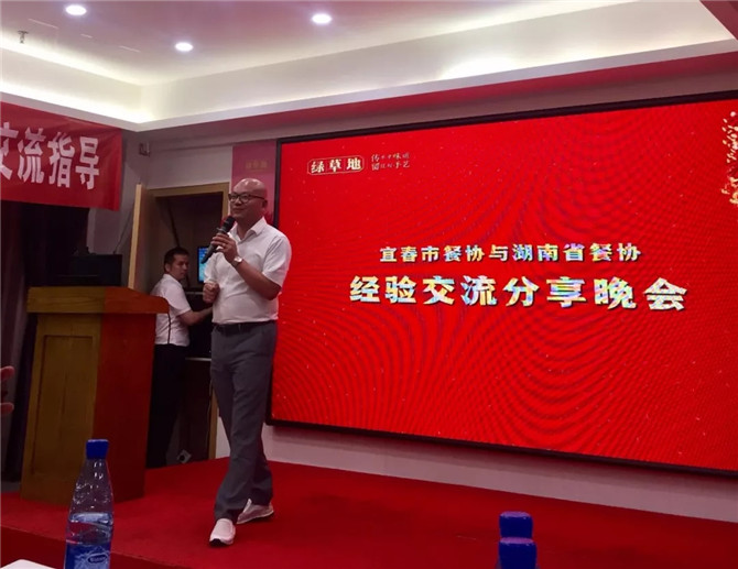 7月10日當晚,在綠草地精品酒店會議廳舉辦了一場【宜春市餐飲行業商會與湖南省餐飲協會】經驗交流分享晚會。分享晚會上,湖南省餐飲協會終身名譽會長周新潮對宜春市餐飲行業商會考察團的到來表示熱烈歡迎,并表示:希望兩地加強交流,相互學習,共同推動餐飲行業健康持續發展。