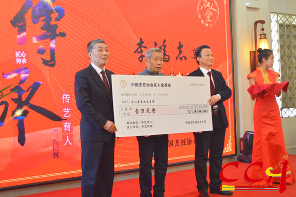 為感謝李鴻志為烹飪行業師徒傳承做出的巨大貢獻,中國烹飪協會喬杰副會長及中國烹飪協會名人堂李春祥秘書長為李鴻志頒發了名人堂傳承基金。