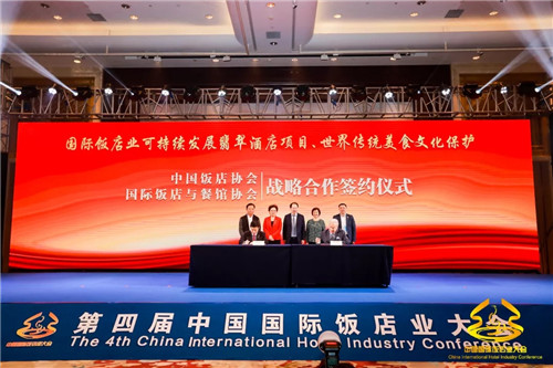 中國飯店協(xié)會與國際飯店餐館協(xié)會簽署“國際飯店業(yè)可持續(xù)發(fā)展翡翠酒店項目、世界傳統(tǒng)美食文化保護”戰(zhàn)略合作協(xié)議